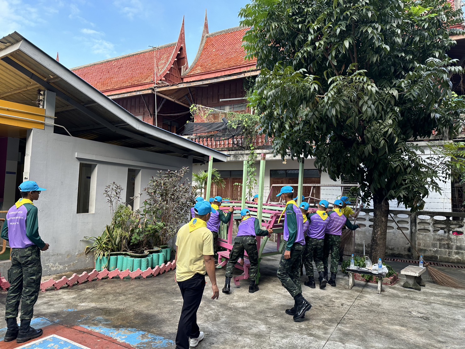 กิจกรรมจิตอาสาพัฒนาเนื่องในวันพ่อแห่งชาติ 4 ธันวาคม 2566 โดย สน.ศาลาแดง / ข่าวภารกิจผู้บังคับบัญชา สน.ศาลาแดงวันนี้( 4 ธ.ค 66 ) เวลา 09.00 น.พ.ต.อ.กิตติพงษ์ สิมมาลี ผกก.สน.ศาลาแดง นาย ณรงค์ ตาปสนันทน์ผู้อำนวยการเขตบางแคพร้อมด้วยพ.ต.ท.ดุรงค์ฤทธิ์ เสนเผือกรอง ผกก.ป.สน.ศาลาแดงพ.ต.ท.ธวัชชัย โป๊ะโดยรอง ผกก.สส.สน.ศาลาแดงพ.ต.ท.กัมปนาท สุนทรสนิท สวป.สน.ศาลาแดงพ.ต.ท.ภูมิพัฒน์ มิลลิมิตรสว.อก.สน.ศาลาแดงข้าราชการตำรวจ สน.ศาลาแดง และเจ้าหน้าที่เขตบางแค จำนวน 120 นาย ร่วมกิจกรรมจิตอาสาพัฒนาเนื่องในวันพ่อแห่งชาติณ โรงเรียนวัดศาลาแดง เเขวงบางไผ่ เขตบางแค กรุงเทพ ฯ FacebookfacebookXtwitterLINEline