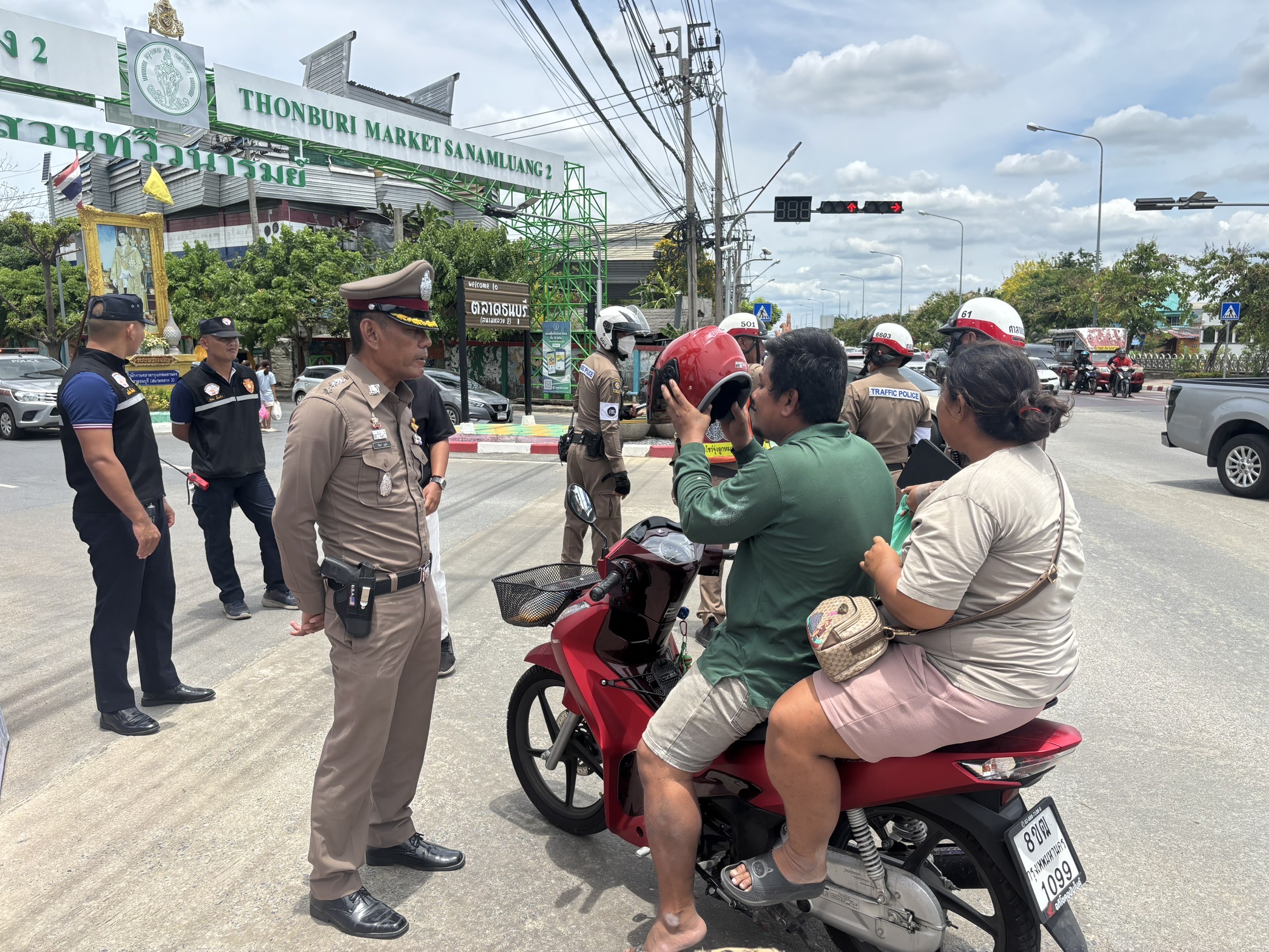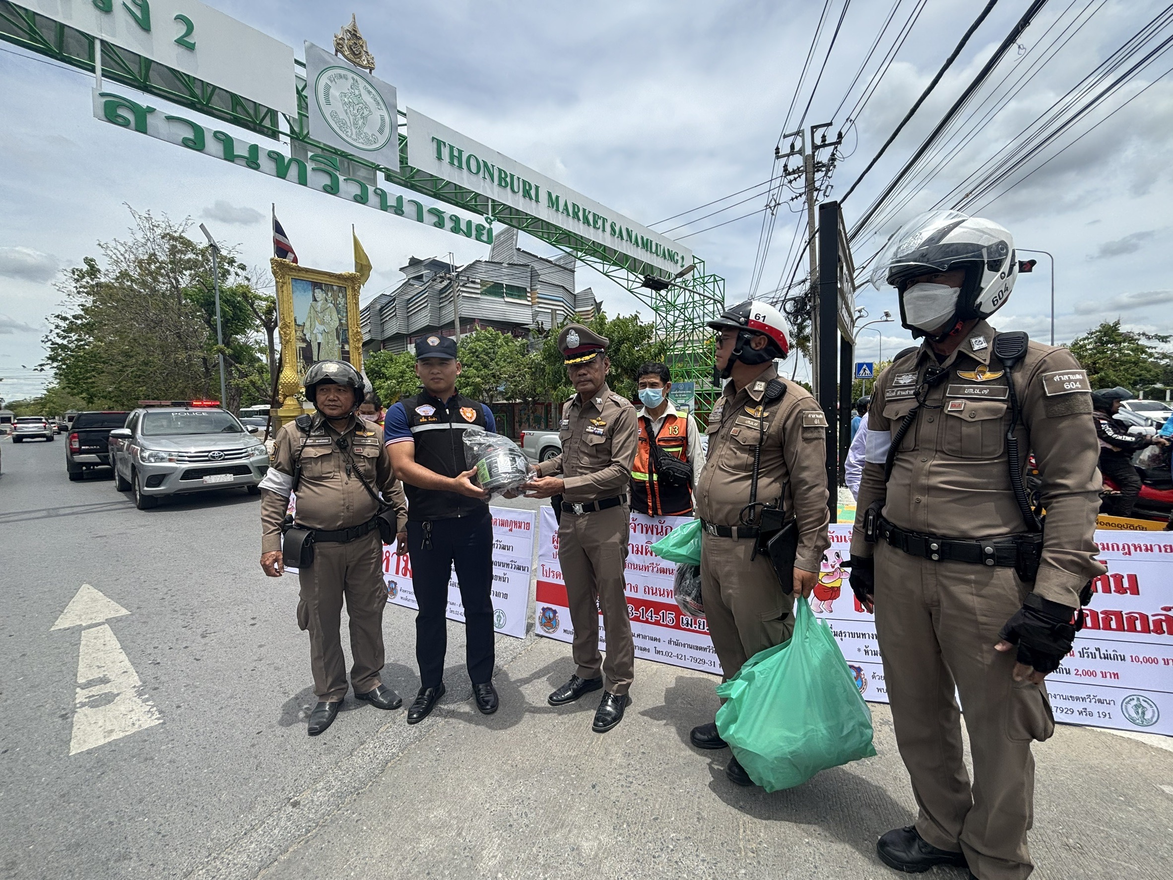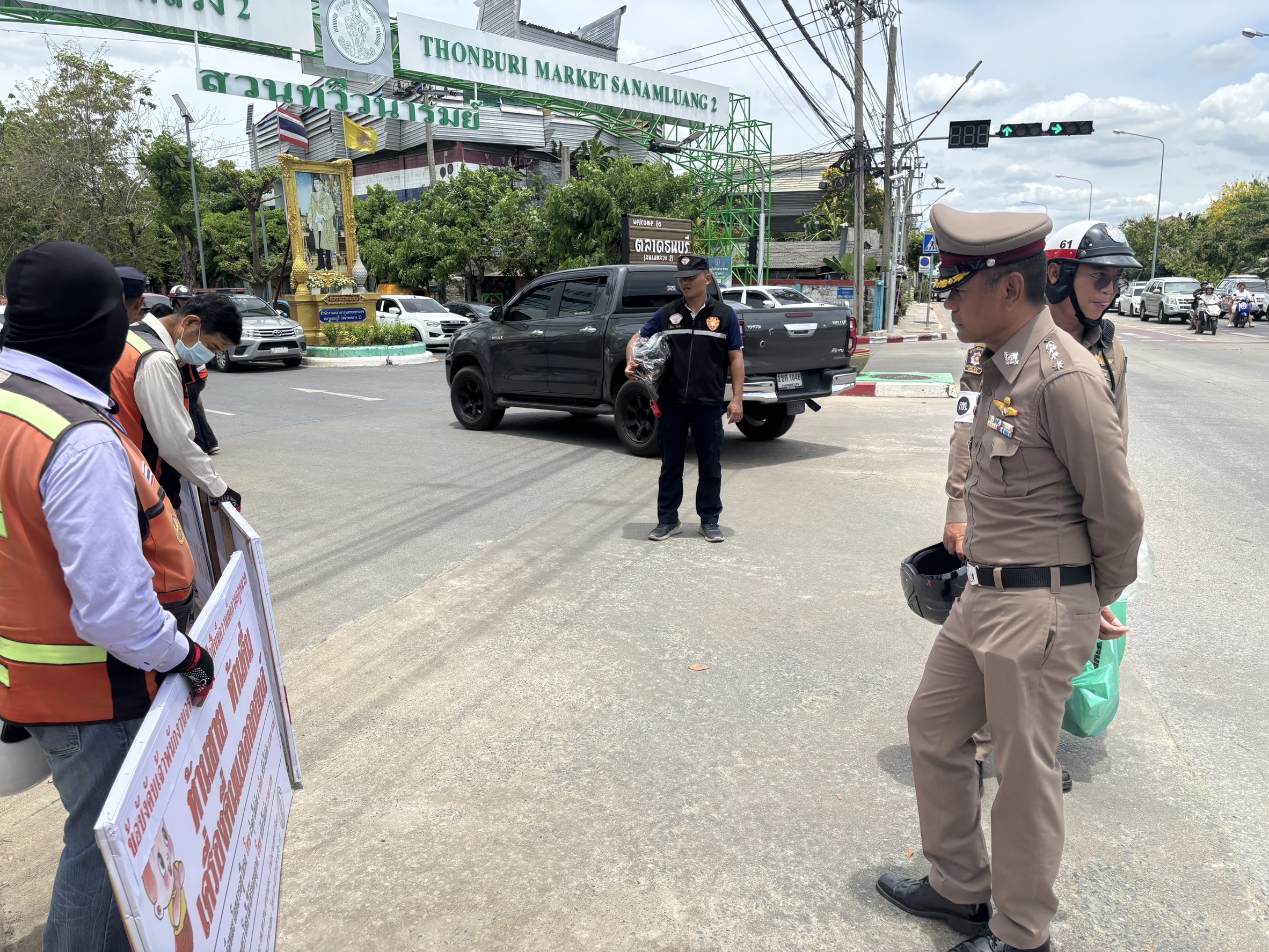 พ.ศ.2568 ณ บริเวณแยกสนามหลวง2 (ตลาดธนบุรี)พร้อมประชาสัมพันธ์ประชาชนซึ่งขับขี่รถบนท้องถนนให้ใช้ความระมัดระวัง ไม่ประมาท ขับขี่ปลอดภัยในช่วงเทศกาลสงกรานต์ พ.ศ.2568