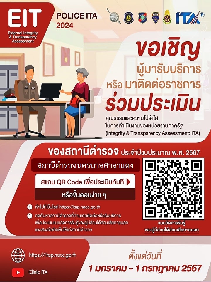 ขอเชิญร่วมประเมินคุณธรรมและความโปร่งใสของสถานีตำรวจนครบาลศาลาแดง ปี 2567