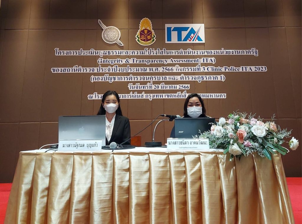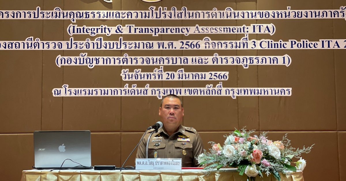 วันที่ 20 มีนาคม 2566 สำนักงาน ป.ป.ช. โดยสำนักประเมินคุณธรรมและความโปร่งใส จัดกิจกรรม Clinic Police ITA 2023 (กองบัญชาการตำรวจนครบาล และตำรวจภูธรภาค 1) โดยมี พล.ต.อ.วิสนุ ปราสาททองโอสถ จเรตำรวจแห่งชาติ เป็นประธานในพิธีเปิดกิจกรรมฯ และ นายทวิชาติ นิลกาญจน์ ผู้ช่วยเลขาธิการคณะกรรมการ ป.ป.ช. เป็นผู้กล่าวรายงาน ณ โรงแรมรามาการ์เด็นส์ กรุงเทพ เขตหลักสี่ กรุงเทพมหานคร