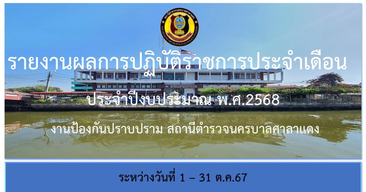 ผลการปฏิบัติงาน งานป้องกันปราบปราม ประจำเดือน ต.ค.67