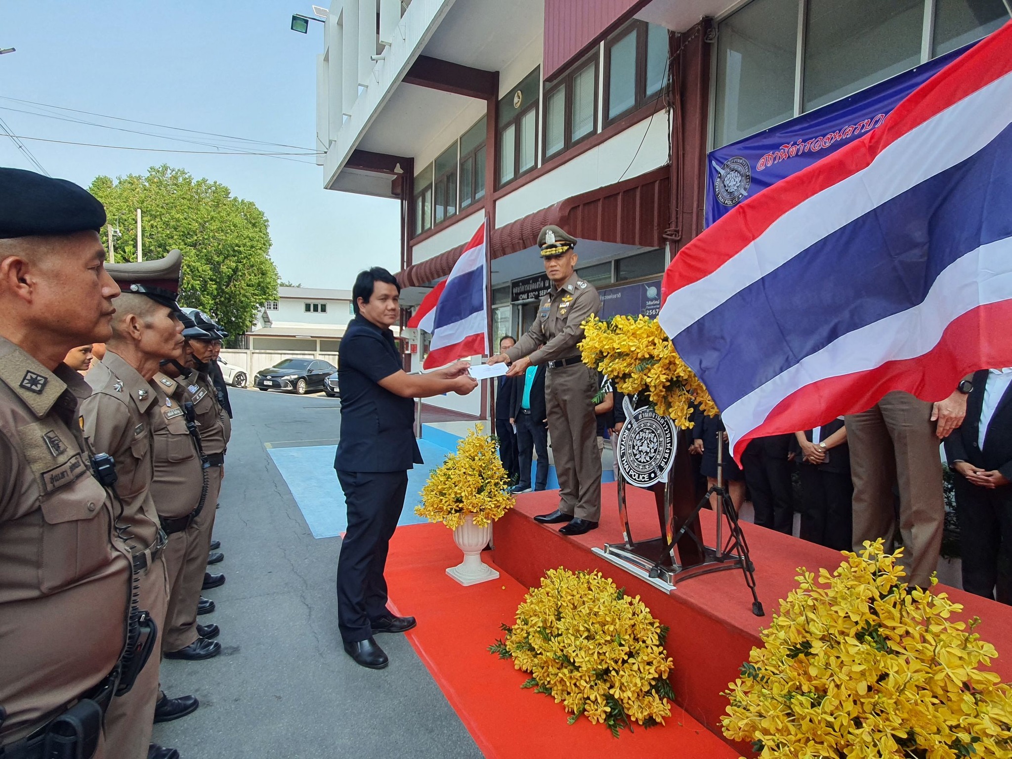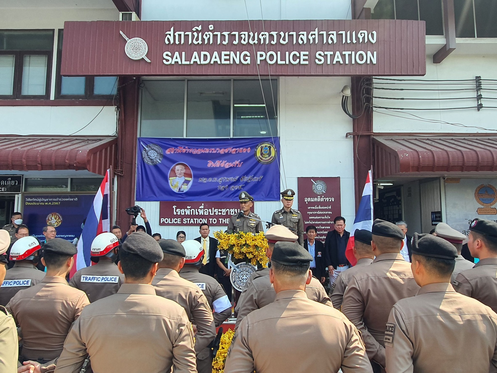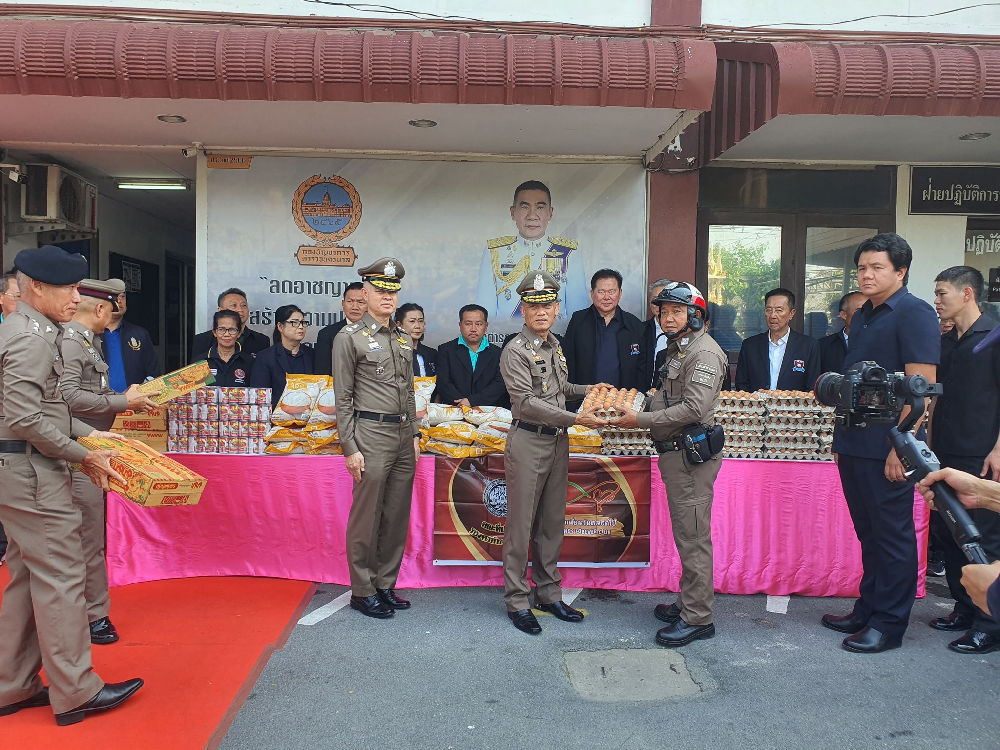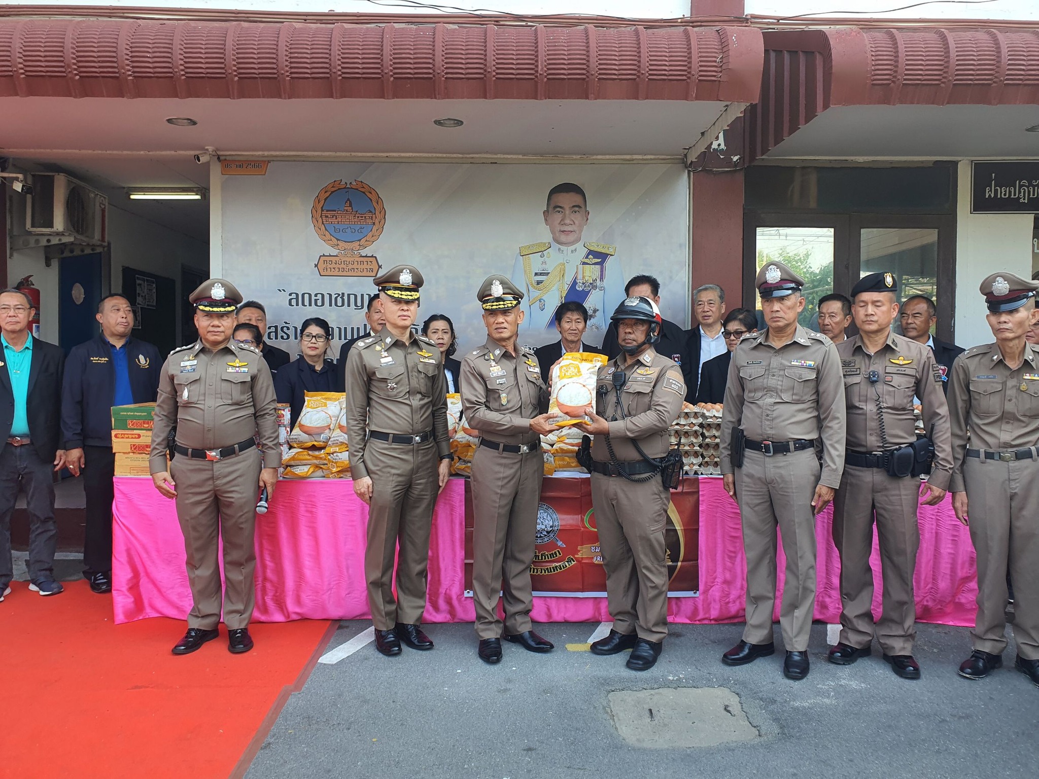 มาตรวจเยี่ยม สน.ศาลาแดง พร้อมมอบเงินช่วยเหลือให้แก่ข้าราชการตำรวจที่ได้รับบาดเจ็บจากการปฏิบัติหน้าที่ และมอบข้าวสารอาหารแห้ง ไข่ไก่ มาม่า ปลากระป๋อง ให้กับข้าราชการตำรวจ สน.ศาลาแดง ทุกนาย เพื่อเป็นขวัญกำลังใจในการปฏิบัติหน้าที่