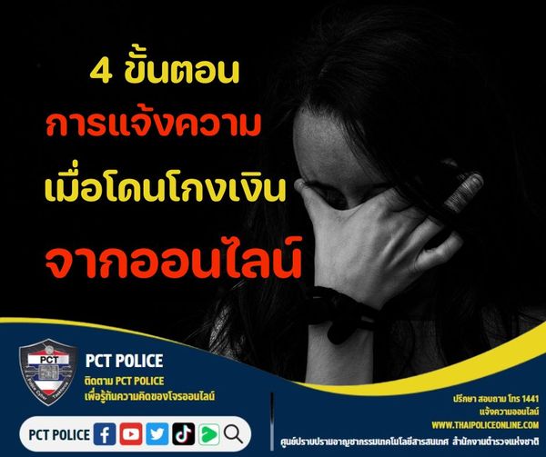 1.ตั้งสติ เก็บหลักฐานการคุย หน้าเพจหรือเว็ปไซต์ สลิปและชื่อบัญชีที่โอนเงิน จากนั้นปริ้นลงกระดาษนำไปแ