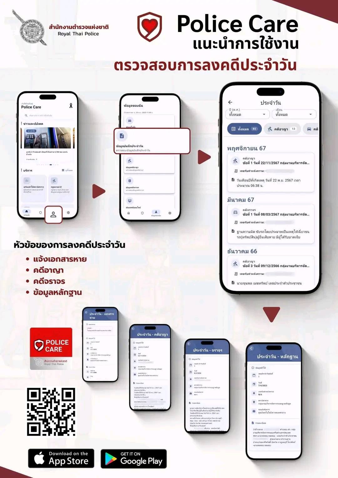 ✓ รวมข้อมูลข่าวสารและเข้าถึงข้อมูลบริการสำคัญของสำนักงานตำรวจแห่งชาติได้รวดเร็ว