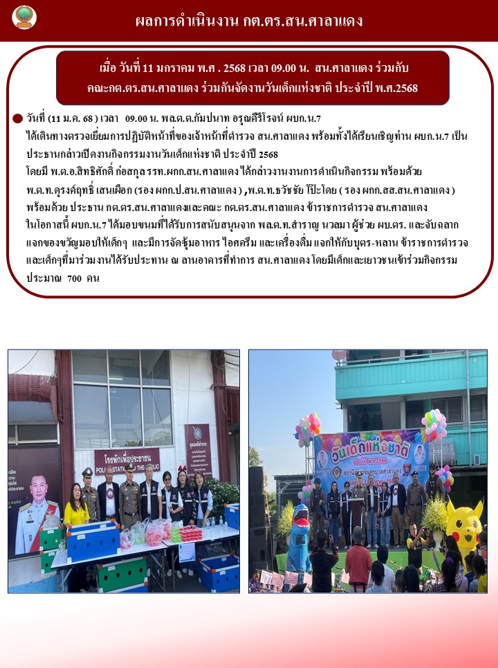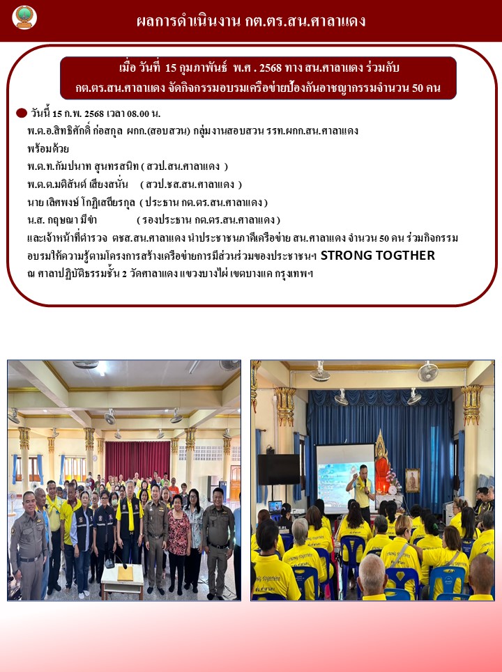 ผลการดำเนินงาน กต.ตร.สน.ศาลาแดง ของปีงบประมาณ 2568