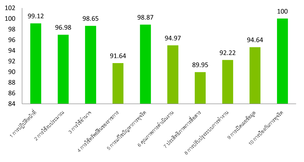 แผนภาพ : กราฟแท่งแสดงผลการประเมินคุณธรรมและความโปร่งใสในการดำเนินงานของสถานีตำรวจนครบาลศาลาแดง ประจำปีงบประมาณ พ.ศ.2565 ในภาพรวม จำแนกตามตัวชี้วัด